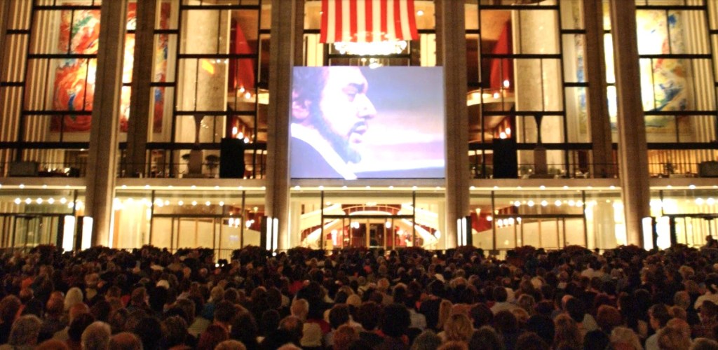 Remember, there was no one coming in or out of the city. Anyone who had tickets for this event lived or was staying in Manhattan. As we walked up to Lincoln Center there was a huge screen set up on the facade of the opera house. The Met was allowing people to view this production free by bringing folding chairs or blankets! We entered the building which is such a wonderful place with huge murals by Marc Chagall – “The Triumph of Music” and “The Sources of Music”.